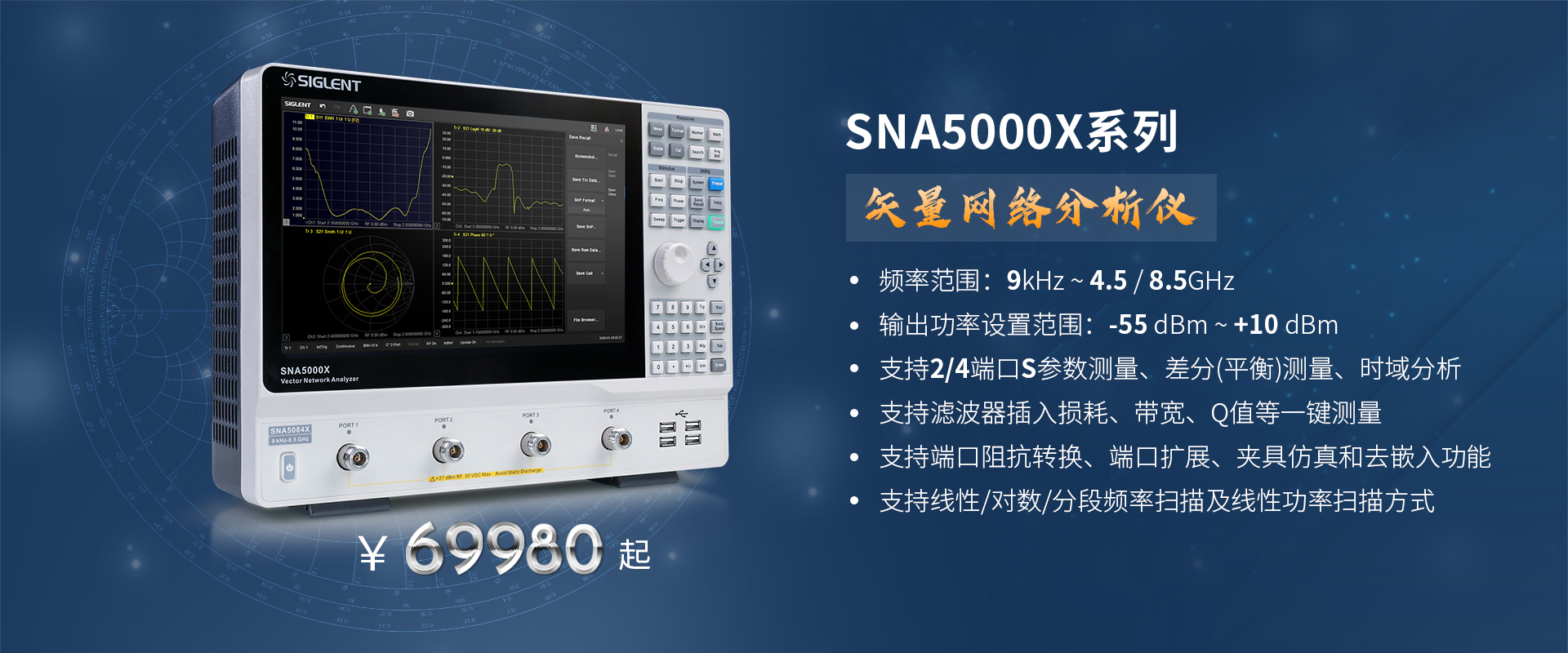 SNA5000X系列矢量網(wǎng)絡(luò)分析儀(Vector Network Analyzer),其測量頻率高達8.5GHz,支持4端口S參數(shù)測量,差分(平衡)測量,時域測...